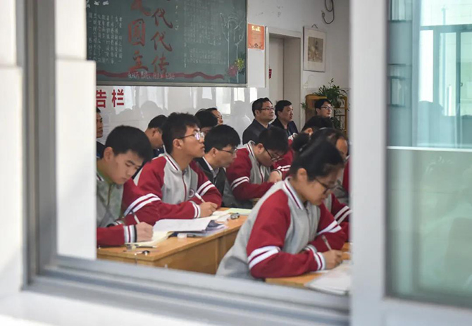 季仲平校长首先带领来宾们参观校园并介绍学校南迁过程和新校区环境文化。上午二、三课,考察团成员听取了高三九门学科13节新高考一轮复习公开课。随后,考察团与我校师生共同参加了升旗仪式。上午第四课,镇江市丹徒区九门学科研训员、备课组长以及我校开课老师进行了听评课交流活动,共同探讨了新高考背景下高三各科教学工作。