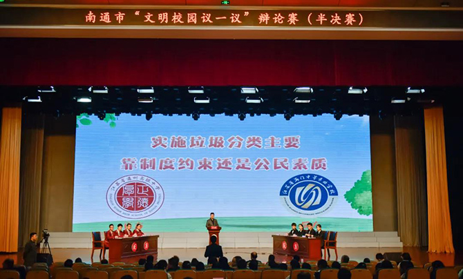 1122日,南通市“文明校园议一议”辩论赛半决赛在我校举行,大学组和中学组四强棋逢对手。经历一番“舌战”后,我校辩论队顺利胜出,进入决赛。