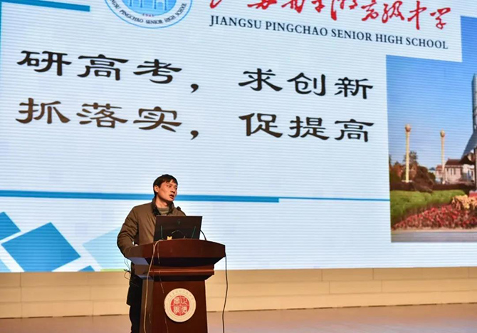 我校及区内其他学校高三年级部主任做了备考交流。会议由区教师发展中心副主任吴国成主持,区教体局副局长钱国华、区教体局党委副书记薛小玉等领导出席会议;区教体局各科室负责人,区教师发展中心高中研训员参加了会议。泗洪县教育考察团观摩了会议。