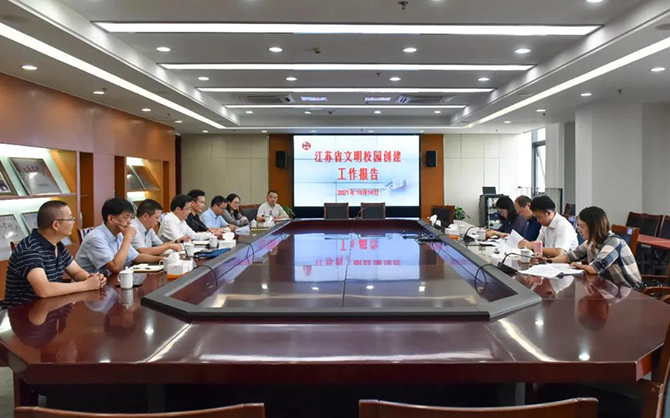 调研组首先听取了季仲平校长的创建工作汇报。季校长从“以领导班子建设好为核心,提升文明校园治理能力;以思想道德教育好为根本,推动文明校园融入德育;以活动阵地建设好为载体,催生文明校园实践成果;以教师队伍建设好为依靠,提高文明校园内涵水平;以校园文化建设好为抓手,推动文明校园形成自觉;以校园环境建设好为保障,营造文明校园浓厚氛围”六个方面汇报了学校经验做法和取得成绩。