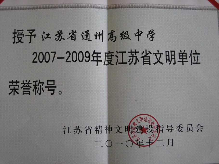 我校再次荣获“江苏省文明单位”称号 时间:2011-05-27 来源:本站原创 作者:翟新民 浏览:次 分享到: 近日,我校再次荣获“江苏省文明单位”称号,这是我校连续第六次获此殊荣。 打印正文 关闭本页 扫一扫关注通州高级中学