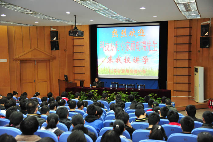2011年11月27日上午,九三学社通州委员会科技专家、原科技局总工程师顾朝瑞来我校之远楼报告厅为高一学生开设了“专利知识”专场讲座。今年是我校第6届“校园科技节”, 为鼓励更多的中学生今后积极投身科技创新和发明创造活动,培养中学生知识产权意识,作为活动内容之一,我校与九三学社通州委员会科技支社合作,为学生开设专利讲座和科普宣传。会上,顾总工程师深入浅出,从“我国专利保护的现状”“专利的特点与种类”“专利权人的权利与义务”“学生身边的专利”“专利的申请”等五个方面全面具体的为学生们介绍了平时看起来很高深的“专利”。作为多年的专利资格代理人,顾总工程师在讲座中利用大量学生熟悉的专利案例,生动有趣的为学生展示了生活中专利意识的重要性,引发了学生的浓厚兴趣。整场报告气氛热烈,为我校学生播下了一粒知识产权的种子,对培养中学生的创新意识,提升他们进行创造性学习的积极性,鼓励更多同学参与科技创新和小发明小创造,都有较大帮助。党委副书记、常务副校长曹光明,教科室主任何忠锋,通州九三副主委季小军,通州九三办公室主任钱栋梁以及部分高一班主任等参加了讲座。