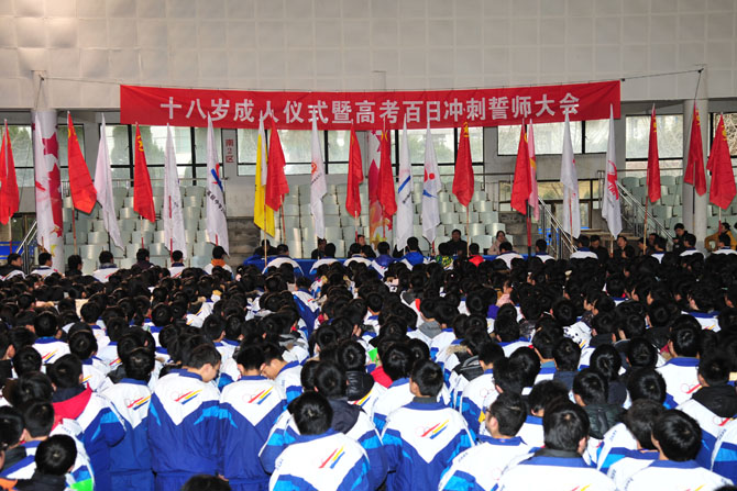 高三举行十八岁成人仪式暨高考百日冲刺誓师大会